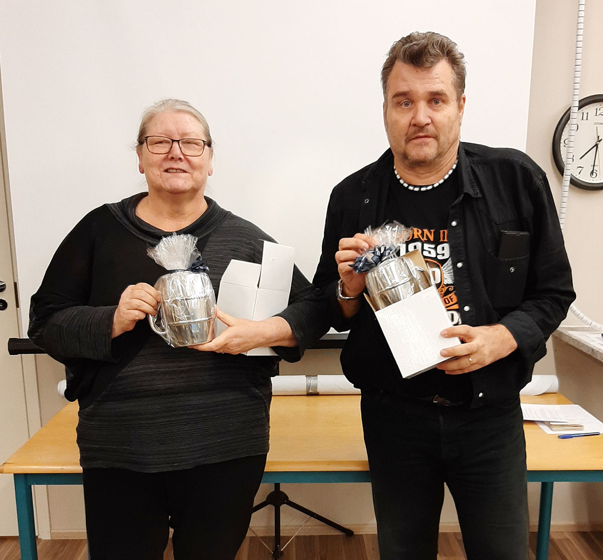 Merkkipäiviä vuoden aikana viettäneitä muistettiin pienin lahjoin: Taisto Kilpinen, Hannu Suominen, Veijo Vyörykkä, Tuula Laaksonen, Kari Sarvi ja Marko Siimesvaara.