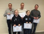 Aktiiviset seuraihmiset saivat pyttyjä kirjahyllyynsä. vas. Pekka Virtanen, Esa Lagerberg, Sirpa Saarela ja Mika Hurula.