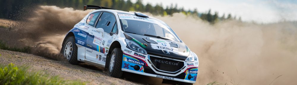 Juha Salo vauhdissa Peugeotilla Kouvolan SM-rallissa 2018. Kuva: Aki Vuorinen